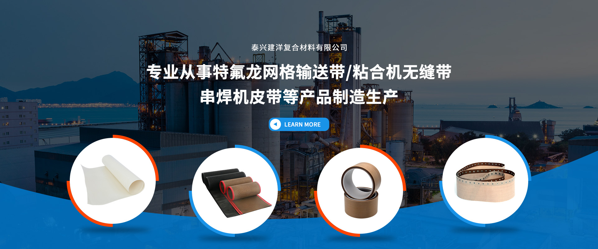 公司目前主要生產特氟龍網格輸送帶,粘合機無縫帶,串焊機皮帶,特氟龍高溫布,特氟龍膠帶,四氟布,烤盤墊,特氟龍耐高溫焊布(漆布),特氟龍粘膠帶等等。